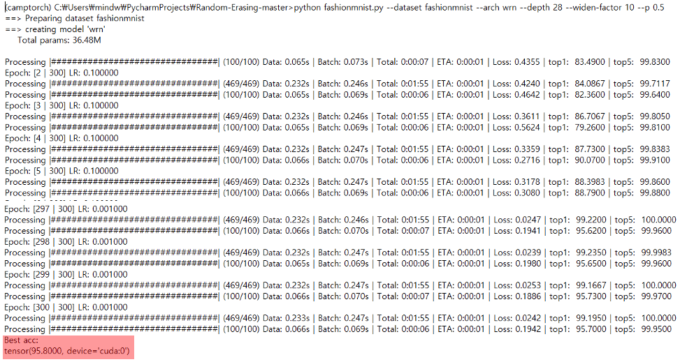 그리고 위에서 설명한 WRN 학습모델을 적용했다.