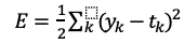 오차제곱합 함수에서 E를 오차 제곱의 합, y_k 를 출력층의 각 출력값, t_k를 정답이라고 할 때 다음과 같은 공식으로 나타낼 수 있습니다.