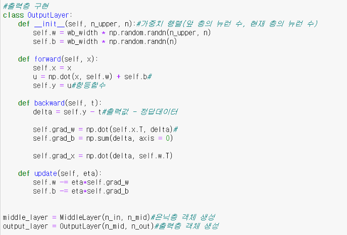 4. 출력층의 활성화 함수는 항등함수를 사용하겠습니다.
