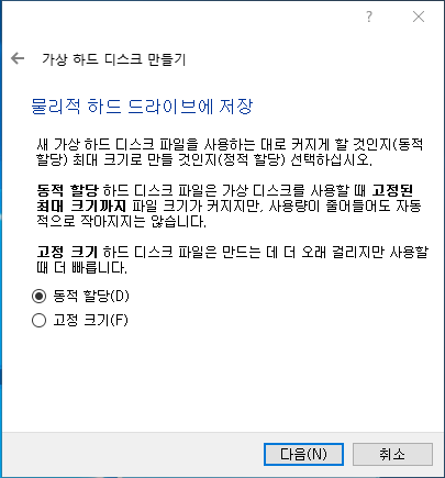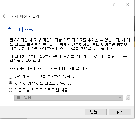 7. 지금 새 가상 하드 디스크 만들기(C)를 선택해 준다