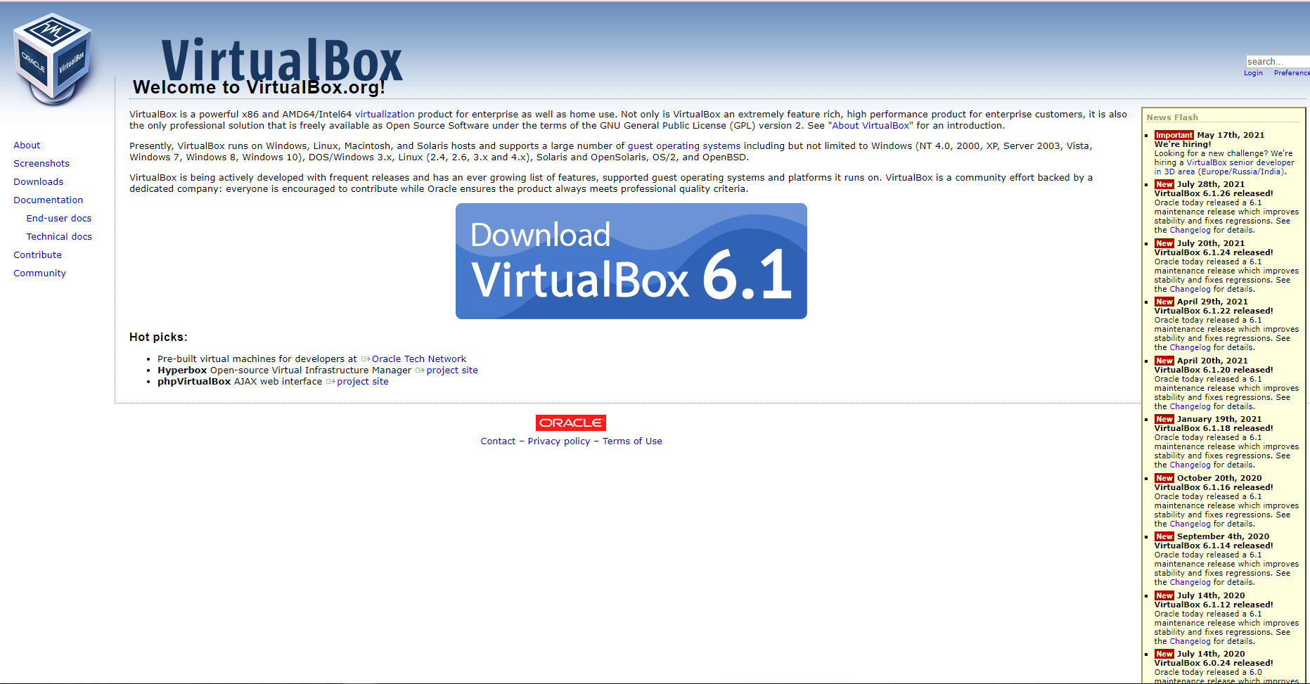 Welcome to VirtualBox.org! News Flash Important May 17th, 2021We're hiring! Looking for a new challenge? We're hiring a VirtualBox senior developer in 3D area (Europe/Russia/India). New July 28th, 2021VirtualBox 6.1.26 released! Oracle today released a 6.1