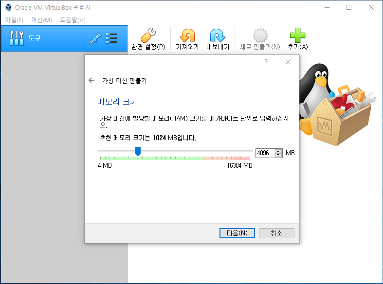 6. 메모리 크기는 여유롭게 4096MB로 해주자