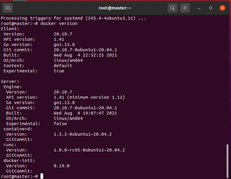 docker version을 입력했을 시 다음과 같이 출력 됩니다.