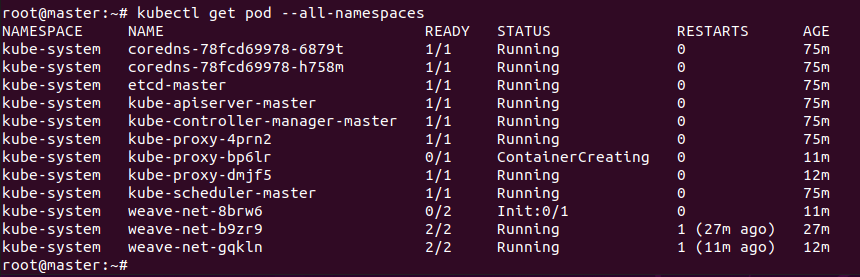 kubectl get pod --all-namespaces를 통해 컨테이너의 정보를 확인할 수 있음