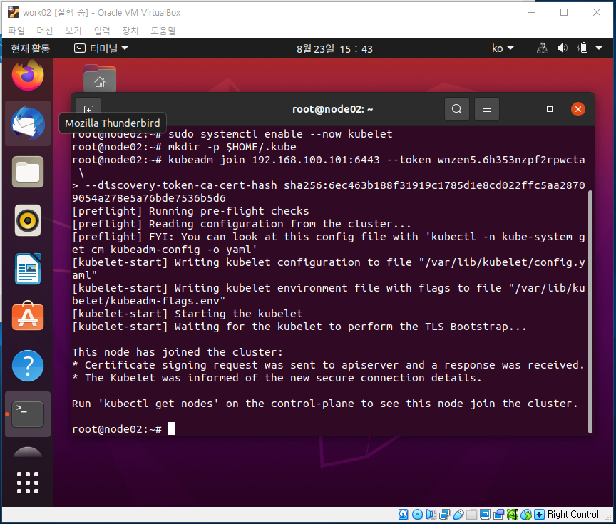 9. work01과 work02의 도커 및 쿠버네티스가 설치가 완료되면