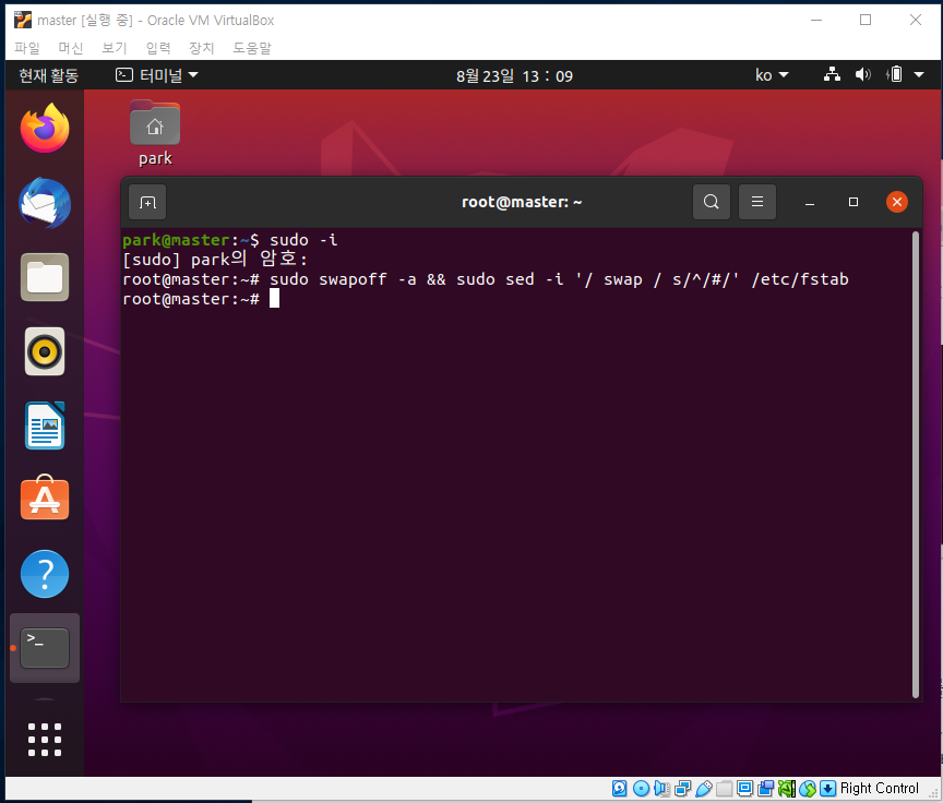 우선 Ubuntu 20.04 LTS 에서 swap 으로 잡혀있는 메모리를 해제해줍니다. Memory Swap은 물리적인 메모리가 부족할 경우 디스크의 일부 공간을 메모리처럼 사용하는 개념인데, 디스크는 RAM 에 비해 훨씬 느리므로 잘못 사용할 경우 심각한 성능저하를 초래할 수 있습니다. 또한 Kubernetes 도 반드시 Swap 메모리를 해제하라고 가이드하고 있습니다.