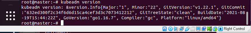 마지막 kubeadm version을 입력해서 다음과 같이 나오면 설치가 완료 된 것이다.