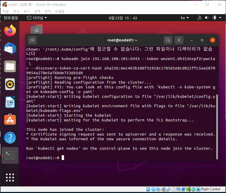 9. work01과 work02의 도커 및 쿠버네티스가 설치가 완료되면