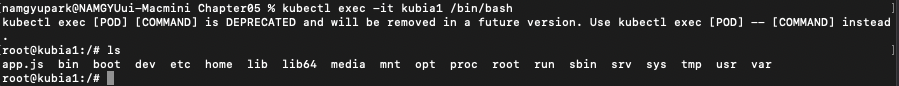kubectl exec -it <pod 이름> /bin/bash