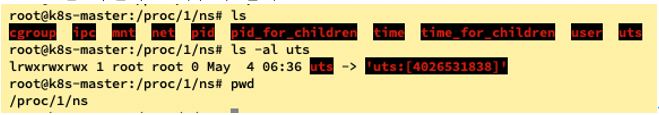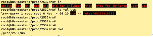PID namespace를 설명하면서 /proc/<PID>에서 디렉터리에서 프로세스와 관련된 정보를 확인할 수 있다고 언급하였었는데 UTS namespace를 생성한 뒤 PID값을 한번 비교해보면 다음과 같습니다.