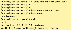 동시에 #hostname <새로운 hostname>을 적게 되면 분리된 namespace에서의 hostname이 설정 된 것을 볼 수 있을 것이다.
