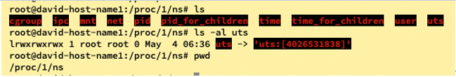 그리고 david-host를 들어간 상태에서 PID =1 systemd에서의 uts를 확인해보면 다음과 같다.