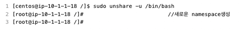 unshare를 하는 순간 새로운 namespace환경이 생성된다.