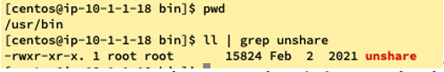 linuxunshare함수는 /usr/bin에 바이너리 형식으로 컴파일된 파일로 존재한다. /user/bin에 가면 우리가 쓰는 기본적인 linux명령어들이 정의되어 있다.